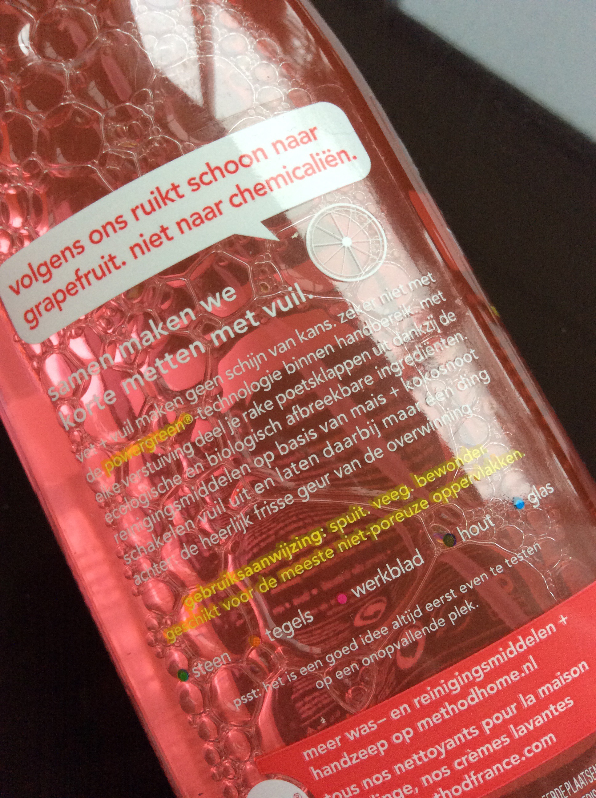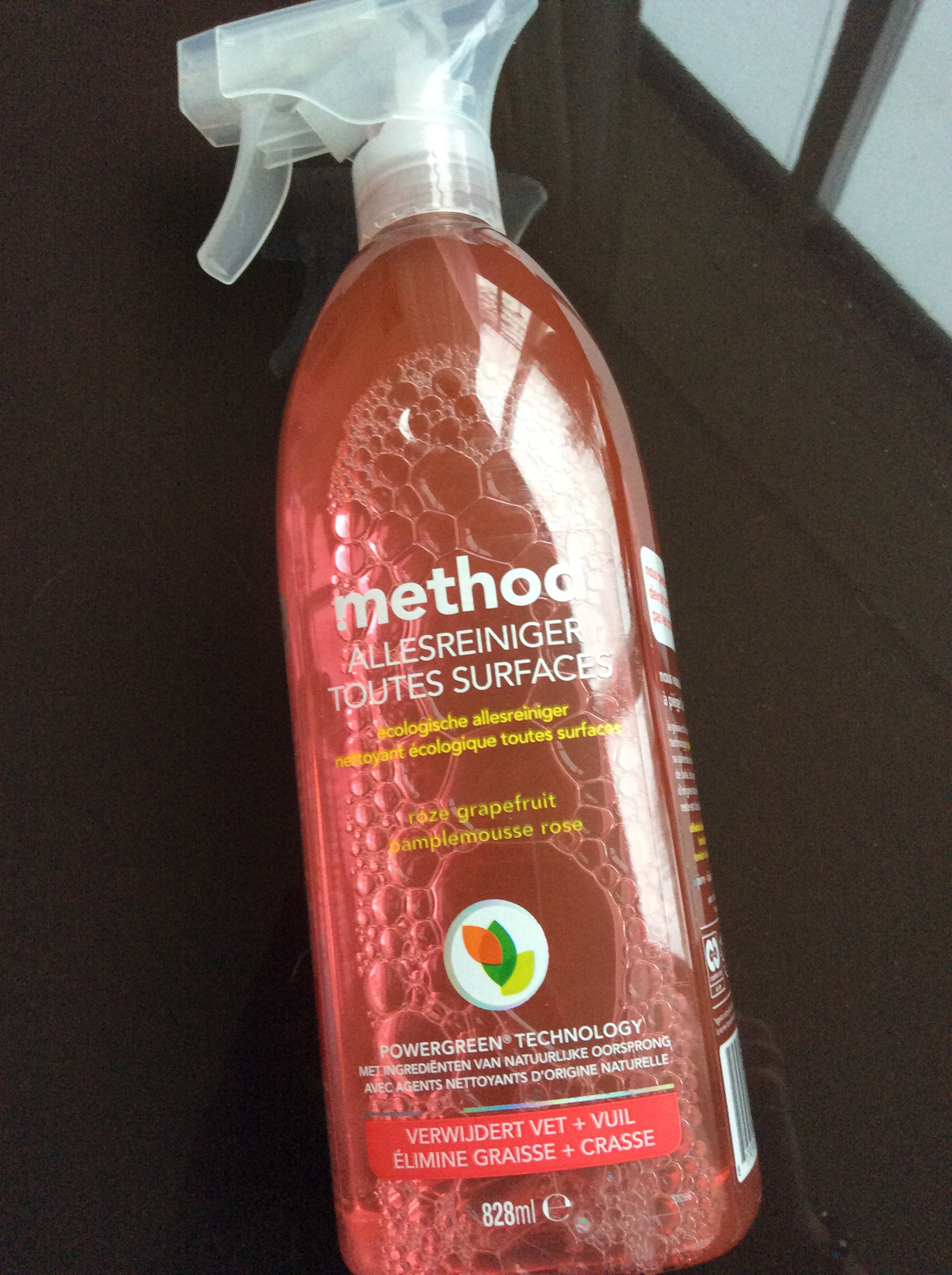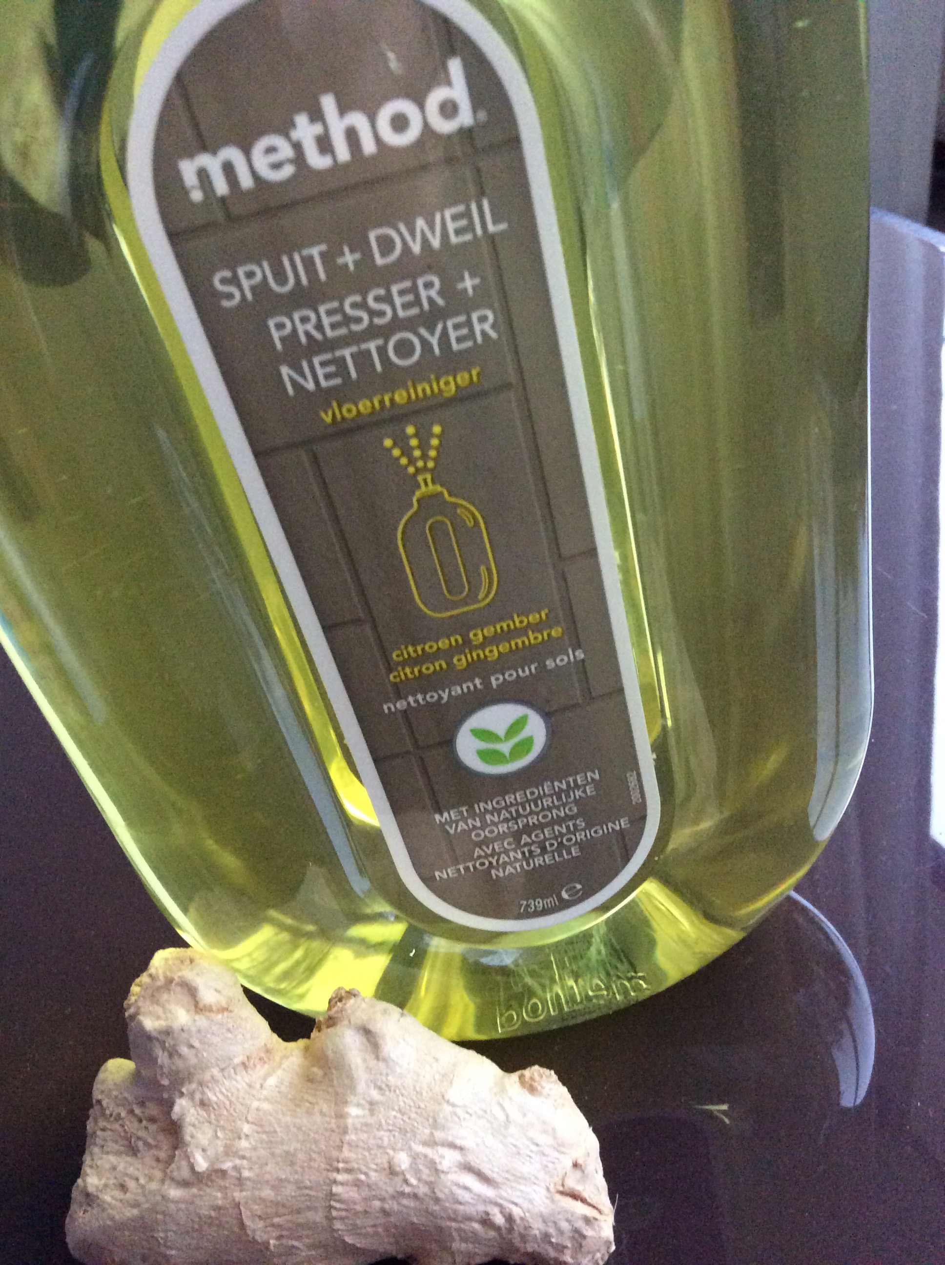 Naast deze twee producten heb ik ook de vloerreiniger voor jullie uitgeprobeerd. Even wennen, want op de fles staat spuit en dweil! Ik vind de hoeveelheid die er dan uit de fles komt vrij veel, dus het is even uitproberen. De geur van citroen en gember is heel fris en vind ik erg lekker maar de geur is minder aanwezig dan in de andere Method producten. De reiniger werkt prima op zowel laminaat als plavuizen en last geen strepen achter. De vloerreiniger kost €3,49 voor 739 ml.