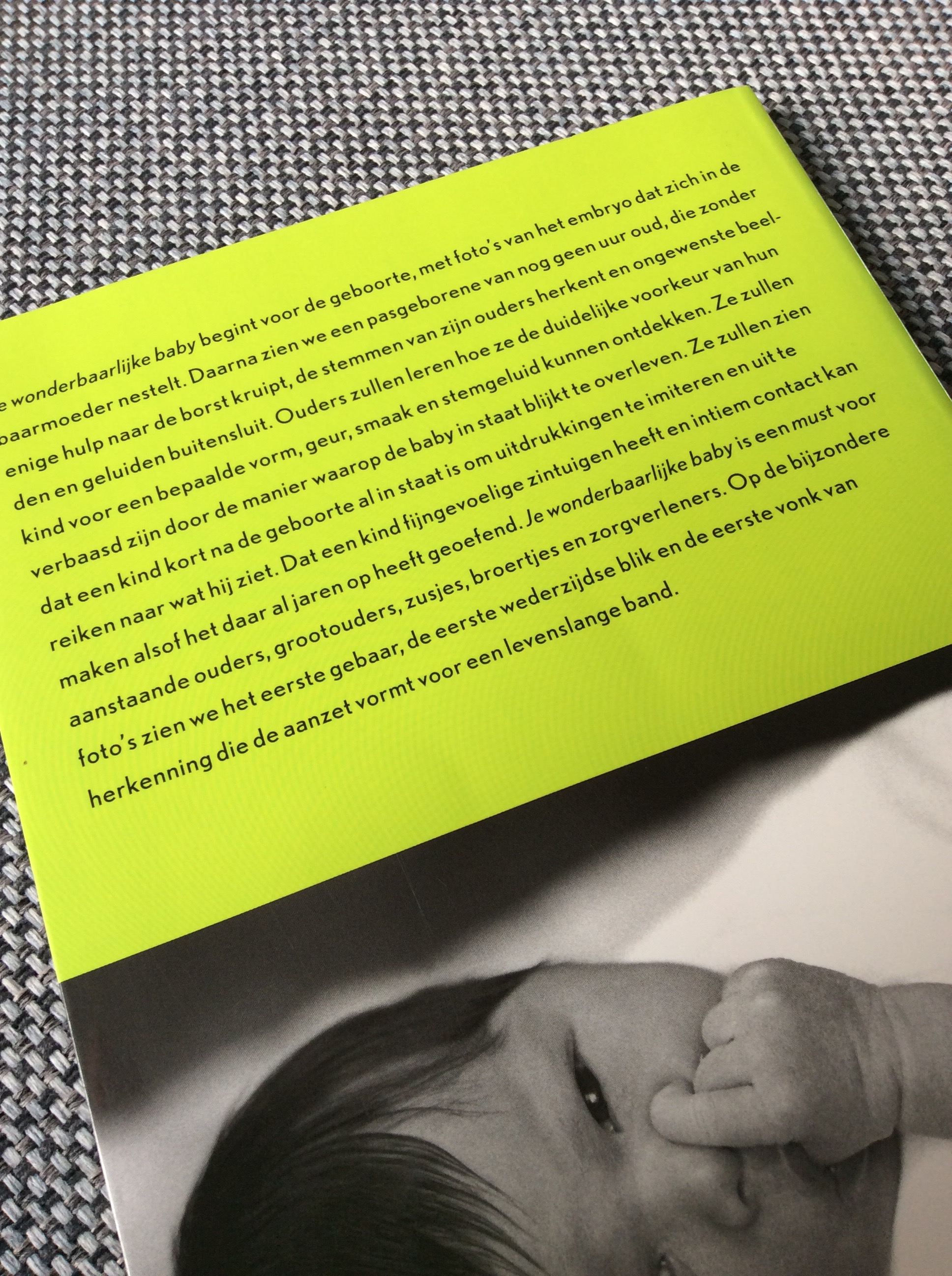 Voordat ik met verlof ging kreeg ik dit boek te leen van een collega. Wat ben ik blij dat zij aan ons dacht toen ze bij het opruimen van haar kast het boek tegenkwam. Het geeft ons veel inzicht in wat een pasgeboren baby al kan. Een aantal zaken heb ik opgenomen in onze lijst met geboortewensen.