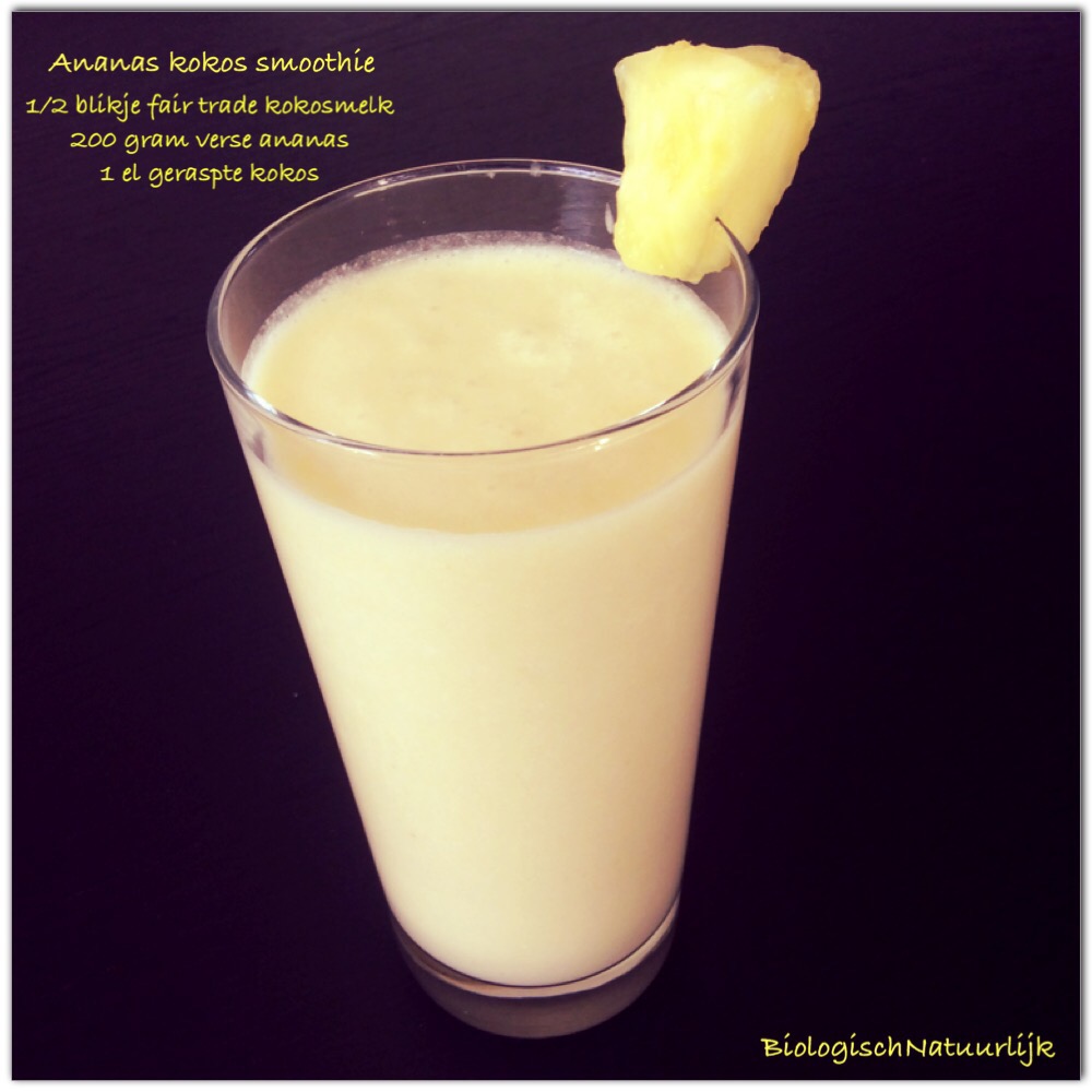 Gisterenavond aten wij een curry, maar er bleef nog een half blikje kokosmelk over. Zonde om weg te gooien, want met kokosmelk kun je zulke lekkere smoothies maken. Ik ben echt dol op ananas, en kokos en ananas zijn de perfecte combinatie.