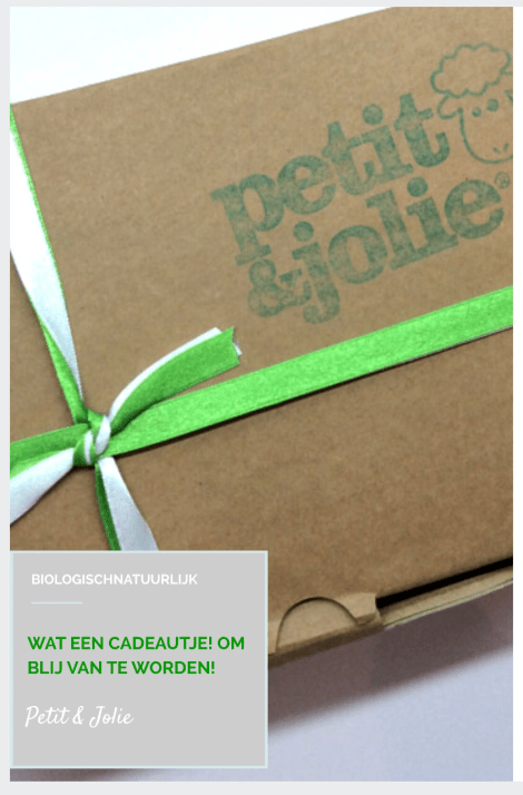 Op de 9 maanden beurs kwam ik het merk Petit & Jolie voor het eerst tegen. Ik raakte aan de praat met de Esther, de oprichtster van dit mooi merk. Ik was onder de indruk van de producten en probeerde op de stand wat producten uit. Deze voelde erg fijn aan en het maakte mij nieuwsgierig.