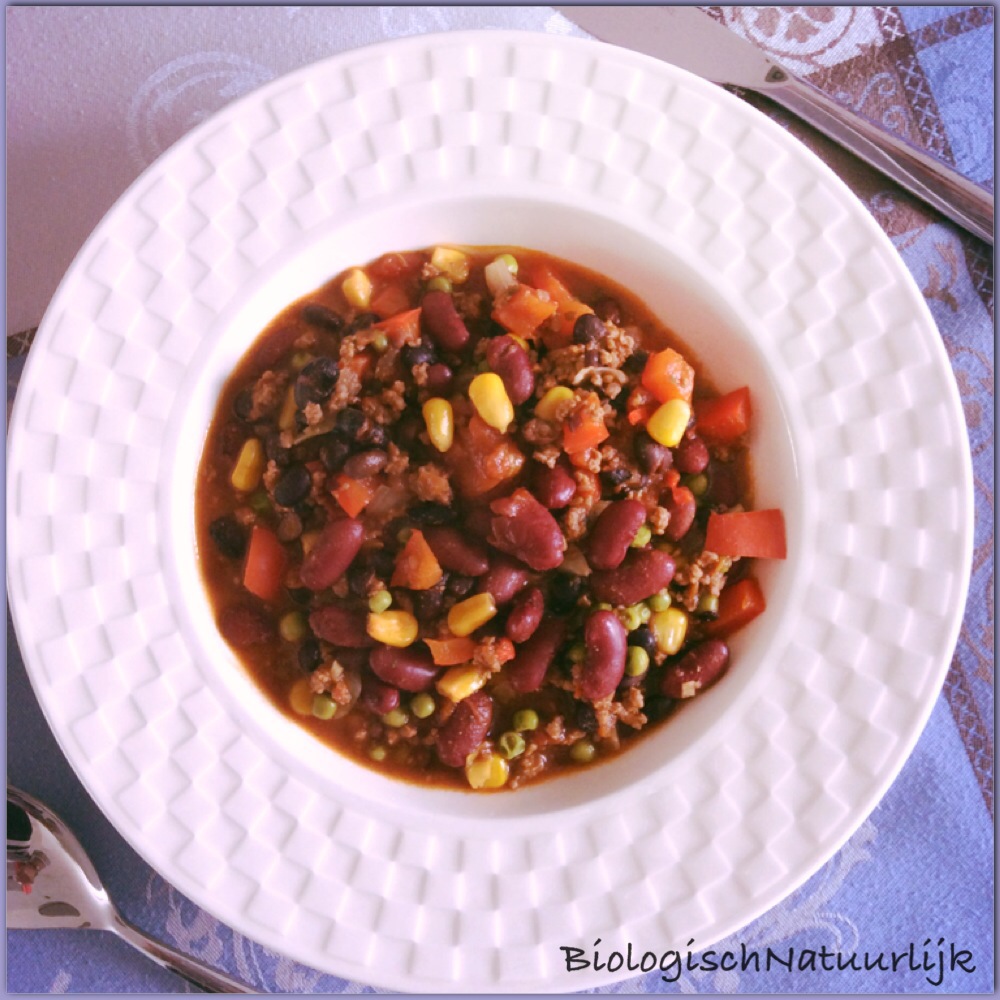 Graag deel ik mijn heerlijke Chili recept met jullie. De bonen haal ik bij gebrek aan tijd uit (glazen)potten, niet uit blik. Ik kies verder alleen voor bio ingrediënten, je merkt het absoluut! De smaken zijn veel intenser en puurder.