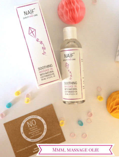 De Soothing Massage olie zit in een flesje en heeft een inhoud van 100ml en kost €15,95. De olie is ook verkrijgbaar via de webshop van Naïf. De verzachtende olie trekt makkelijk in en laat daarmee geen vet laagje achter op dr huid.