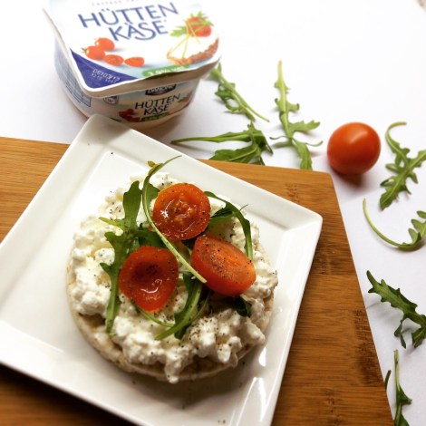 De eerste wafel belegde ik met hütten kase, rucola en tomaat.