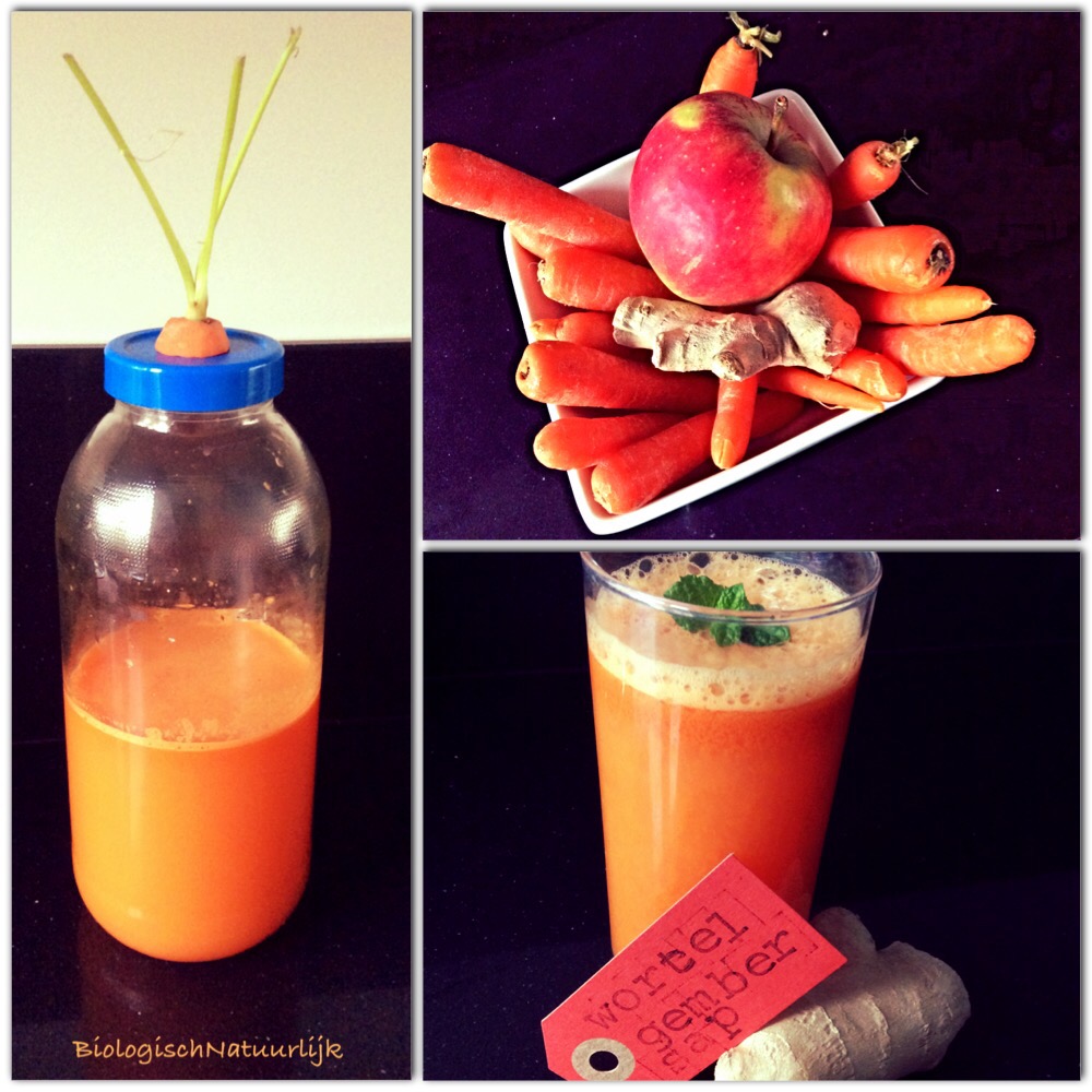 Graag wil ik het recept van mijn wortel-gembersap met jullie delen. Ik kreeg voor mijn verjaardag een mooie foodprocessor en een sapcentrifuge! Nu kan ik heerlijk mijn eigen sapjes maken en experimenteren met verschillende groenten- en fruitsoorten.